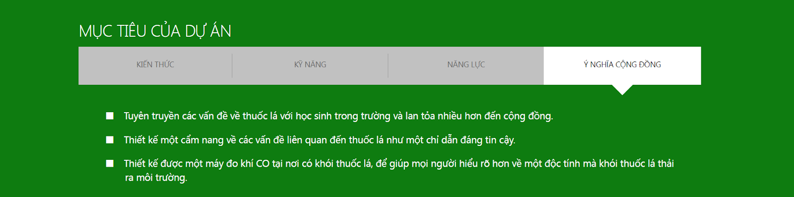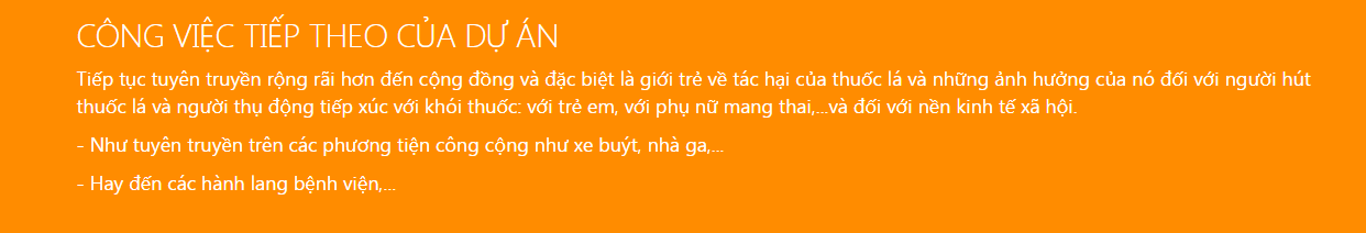 Dự án: VÌ MỘT MÔI TRƯỜNG KHÔNG KHÓI THUỐC